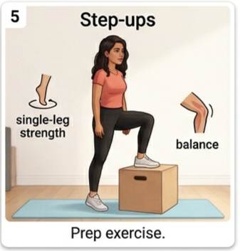 If step-ups feel unstable or hard to control, your body may need a bit more strength and support before adding impact.