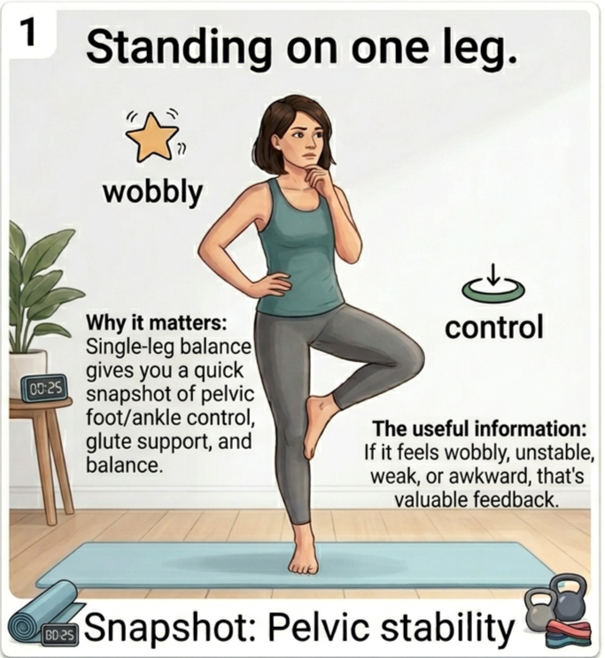 Can you comfortably stand on one leg for 20–30 seconds each side without feeling all over the place?